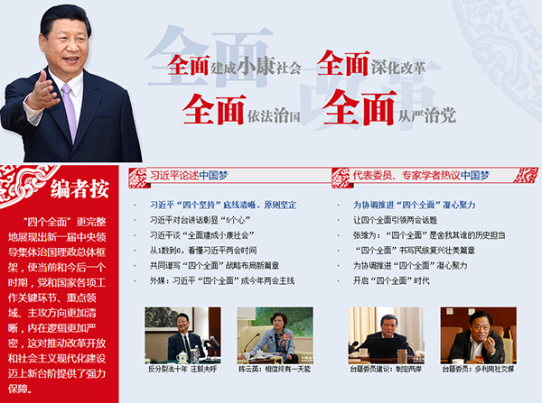 中国台湾网在其两会专题中嵌入“四个全面”专栏,并集纳有关“四个全面”的稿件