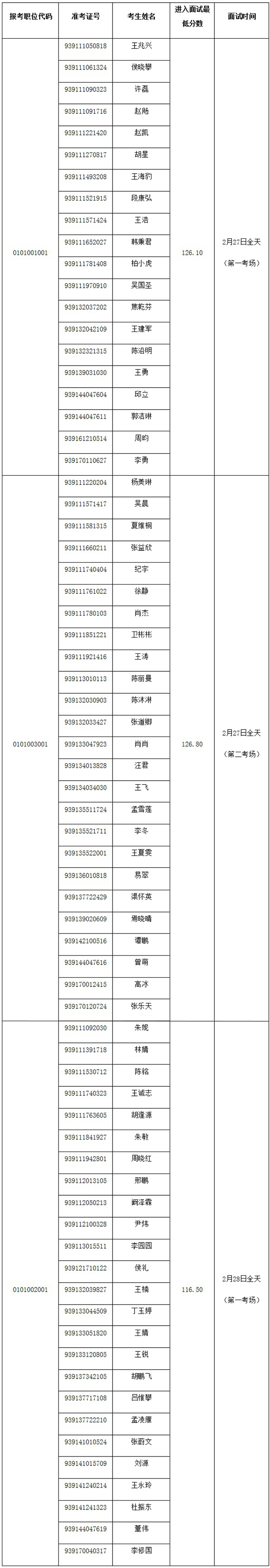 一、 面试人员名单(按准考证号排序)
