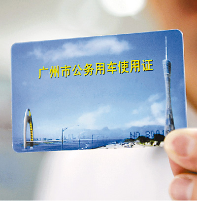 5月8日,广东省广州市为公务用车人员发放的公务用车使用证。使用公车必须刷卡,否则系统将接到违规使用报警。新华社发