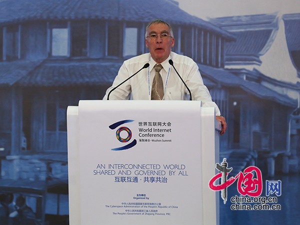 网络空间安全和标准化专家汉斯·鲁道夫·托蒙发表演讲。中国网 董宁