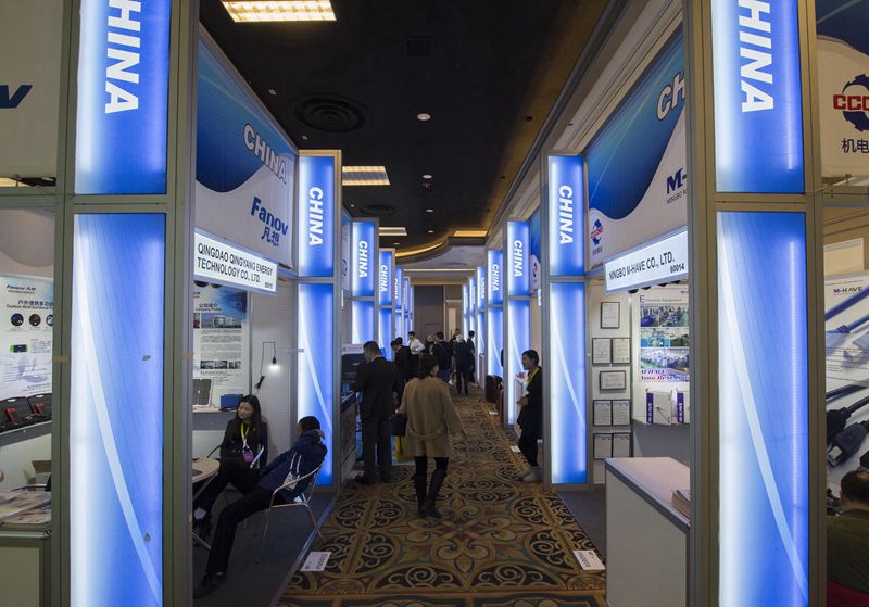 这是在美国拉斯韦加斯拍摄的2015国际消费电子展上的中国展区一角(1月6日摄)。 2015国际消费电子展设立了中国专区,数十家中国小微企业入驻。中国小型电子产品精致实用,科技含量高,受到众多观展者欢迎。新华社记者杨磊摄
