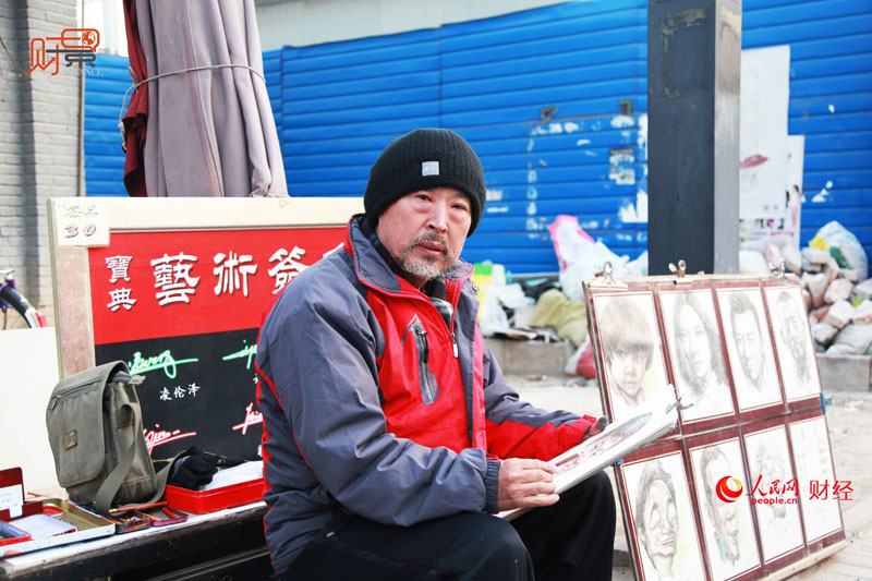 11点,798艺术区,为行人画素描的画家 。从业20年,10分钟就能画一张素描,最骄傲的事是给习大大画过漫画。