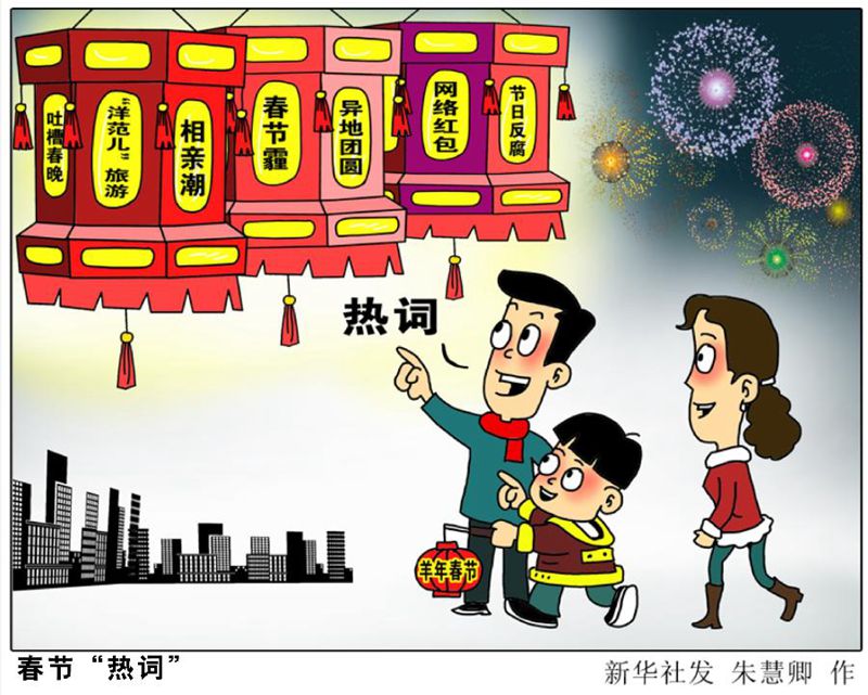 漫画:春节“热词” 新华社发 朱慧卿 作