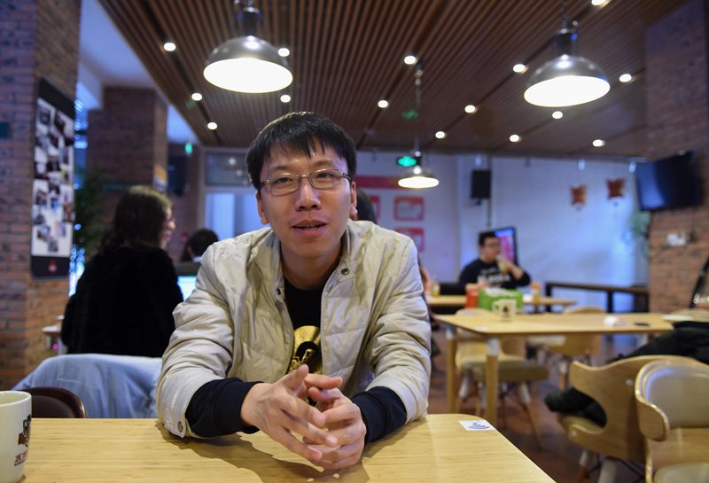 “85后”孙飞禹在中关村创业大街进行考察(3月17日摄)。
