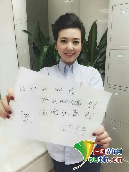 武汉电视台《武汉新闻》女主播陈枫茹向广大电视观众号召“让网络环境温暖如春”。 陈枫茹供图