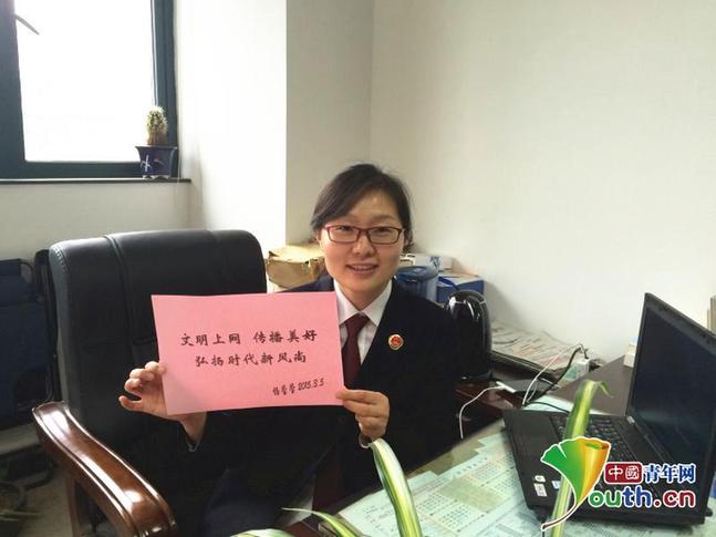 公务人员代表也来啦!武汉市检察院十佳检察官杨莹莹积极为“清朗网络·青年力量”活动进行推广,她表示,“文明上网,传播美好,弘扬时代新风尚。” 杨莹莹供图