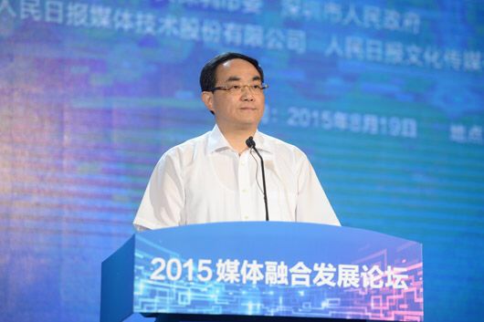 很高兴来到改革开放的前沿深圳,参加由人民日报社和深圳市委市政府联合举办的2015媒体融合发展论坛,我谨代表中央网络安全和信息化领导小组办公室 、国家互联网信息办公室,对于论坛的召开表示热烈的祝贺。