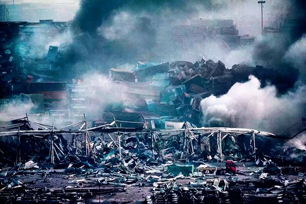 2015年8月13日,天津,爆炸事故发生现场。供图/CFP