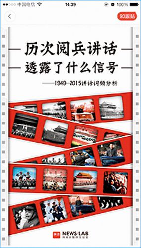 在新闻阅读由PC端转向移动端的大背景下,移动阅读对网络媒体提出了更高的要求。适合手机等移动端传播的H5专题在今年的抗战胜利网络宣传报道中被广泛应用,人所能听到的、看到的、点击的一切内容,如文字、图片、视频、声音、flash动画等等跨平台集纳在手机屏幕上。基于H5开发的轻应用比本地App拥有更短的启动时间,更快的联网速度,用户用较少的流量就可以欣赏到炫酷的视听效果。