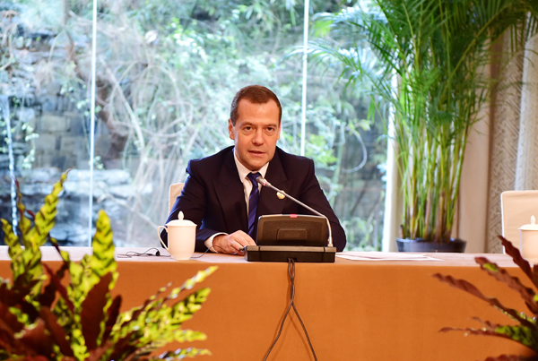 12月16日,第二届世界互联网大会期间,在俄罗斯总理梅德韦杰夫牵头下,中俄互联网企业家展开风云对话,共商合作良机。图为俄罗斯总理梅德韦杰夫。