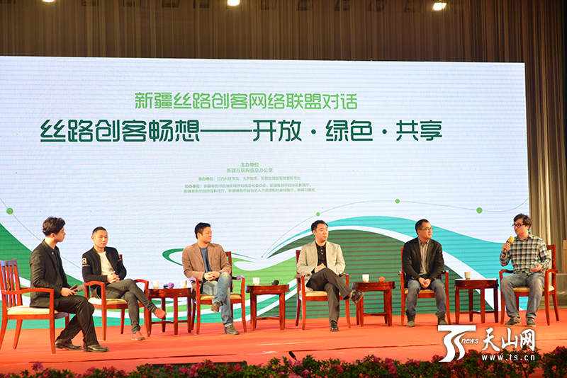 北京车库咖啡投资合伙人、教育管理公司CEO金子森,江西科技学院团委书记、创新工作办公室主任周小丰,江西魅丝蔻化妆品有限公司创始人江期胜,达西村电子商务协会会长黄昌辉,北京大学真牛贷项目创始人萨拉依丁·阿吉买买提就“创新力量”展开讨论。苏剑超 摄