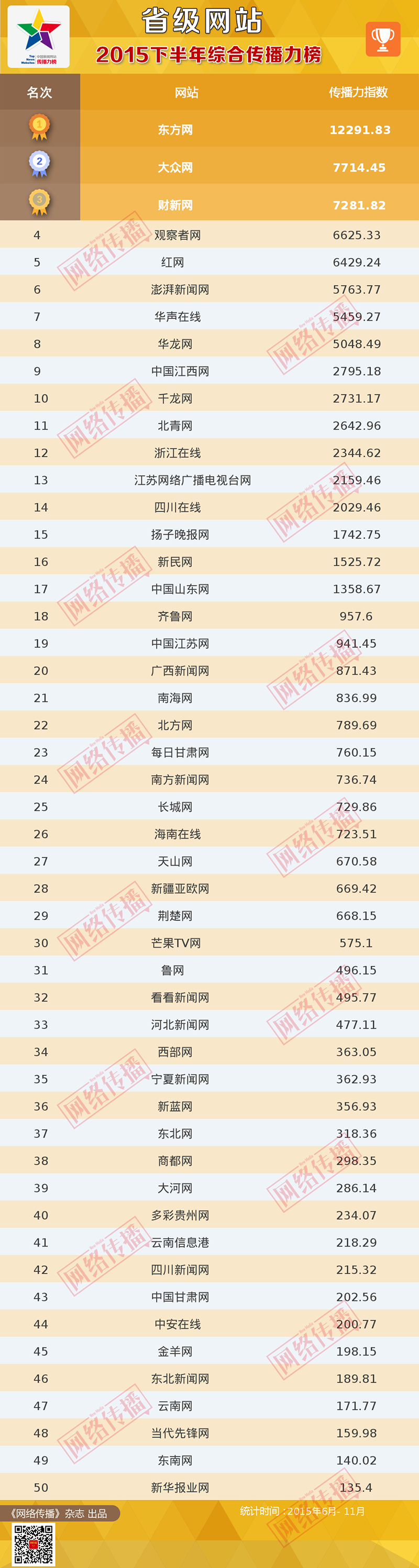 2015下半年省级网站综合传播力排行榜