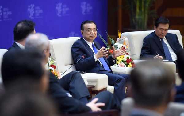 5月24日,国务院总理李克强在贵阳花溪迎宾馆同出席中国大数据产业峰会暨中国电子商务创新发展峰会的国内外业界人士举行对话会。 新华社记者张铎 摄