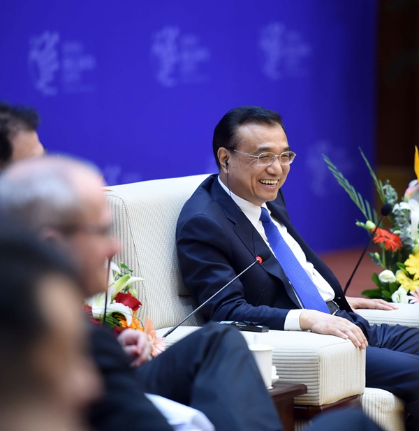 5月24日,国务院总理李克强在贵阳花溪迎宾馆同出席中国大数据产业峰会暨中国电子商务创新发展峰会的国内外业界人士举行对话会。 新华社记者张铎 摄