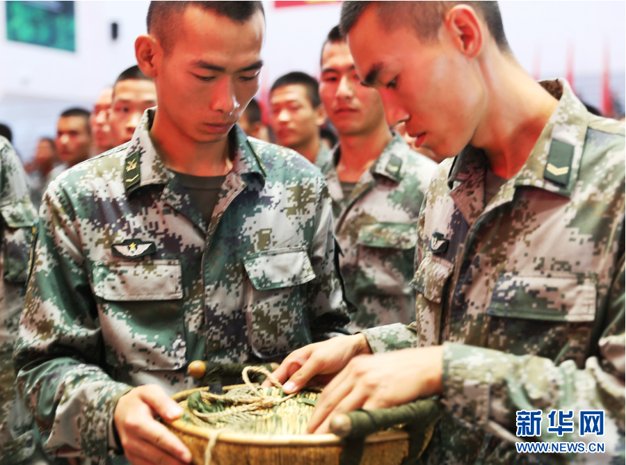 活动现场,数百名战士整齐列队,穆然挺立,这双由老红军20年前亲手编制的草鞋在战士们手中逐一传递。手捧着红军老战士亲手编织的草鞋,每个人都被一种浓浓的情思感染着。战士们纷纷表示要把手中的草鞋传递下去,传承长征精神。