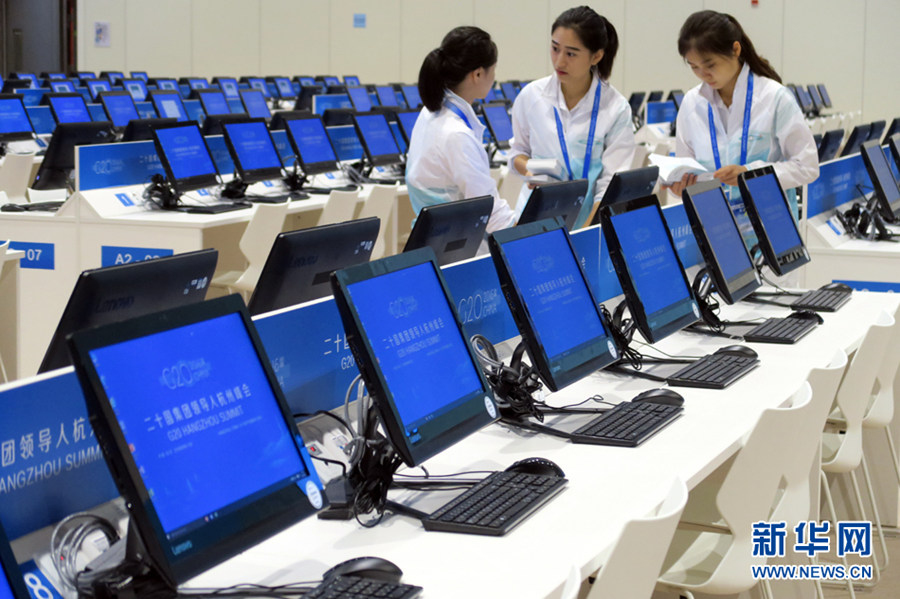 9月4日至5日,二十国集团(G20)领导人第十一次峰会将在中国杭州举行。9月1日,峰会新闻中心正式启用。新华网记者 陈竞超 摄