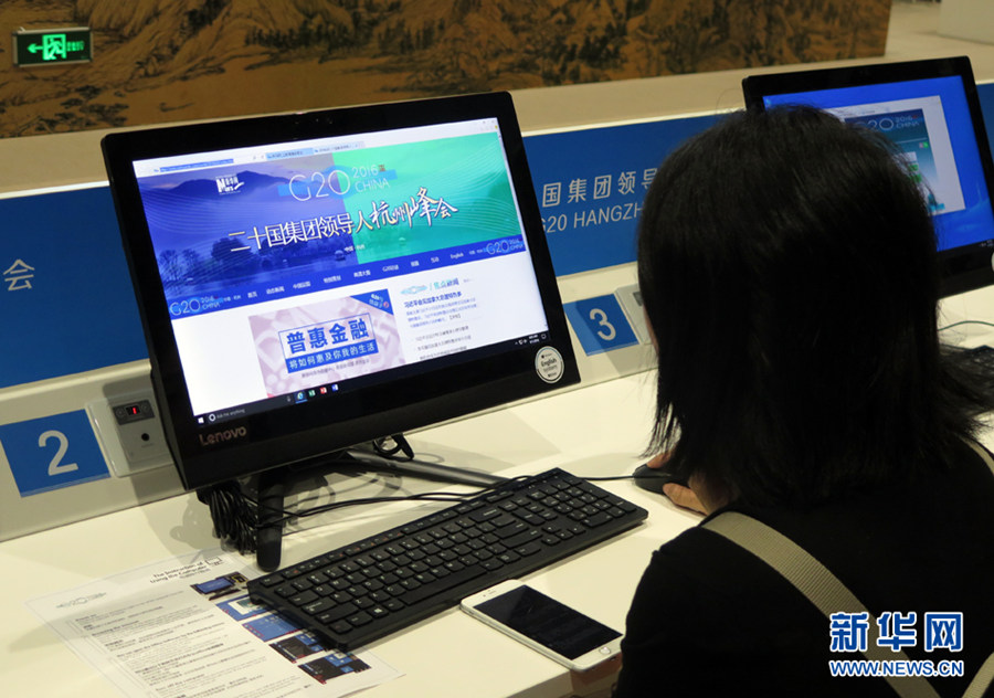 一名记者在新闻中心浏览新华网G20峰会专题页面。