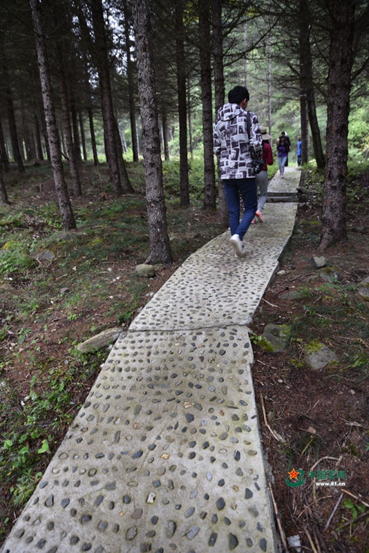 如今的红军小路在起点处略加修葺,以便让来者体验一下当年红军长征的漫漫征程。路好走多了,却依然透着寒气。夹金山顶海拔4000多米,空气稀薄,常年积雪。1935年6月中旬,红一方面军以顽强的革命意志征服了长征途中的第一座大雪山——夹金山,与红四方面军在小金胜利会师,从而彻底摆脱了敌人的围追堵截。