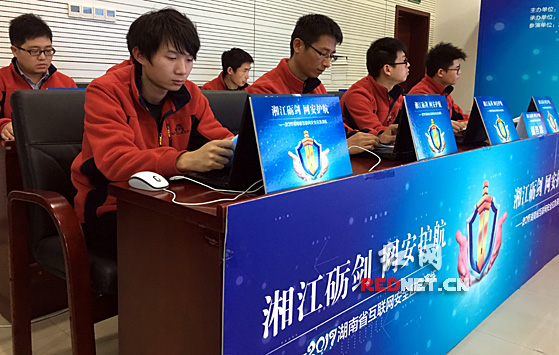 “湘江砺剑 网安护航”2017湖南省互联网安全应急演练现场。