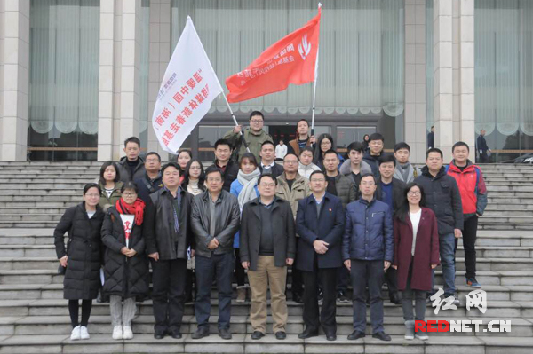 1月13日,2017年网络媒体“走转改”湖南启动仪式暨“温暖中国(湖南)”网络媒体新春走基层活动启动仪式在湘潭市岳塘区举行。仪式上,湖南省委网信办副主任屈贵全、省委网信办网评处副调研员谢廷良向参加此次活动的网络媒体记者授旗。