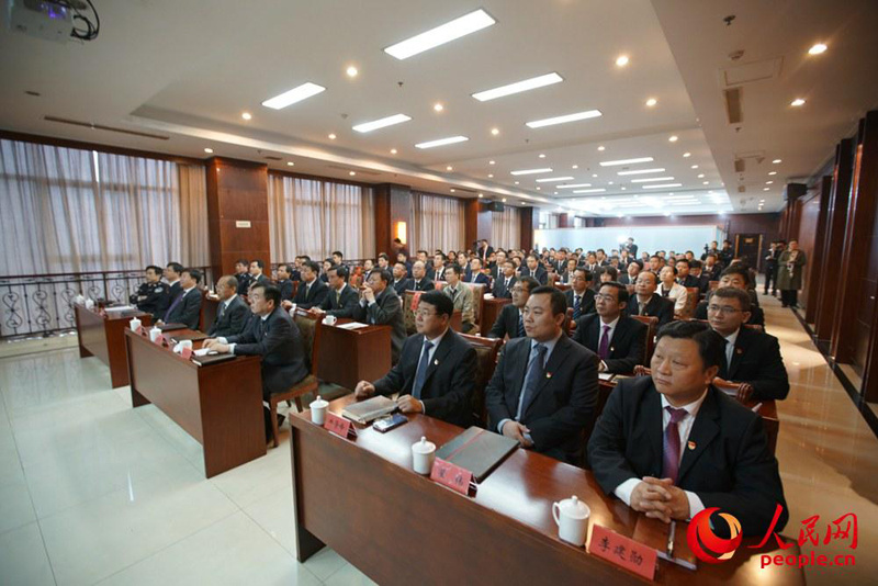 10月18日上午,雄安新区党政机关干部群众正在收看十九大开幕会盛况。人民网 李根 摄