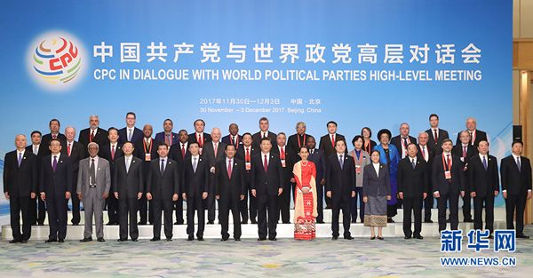 12月1日,中共中央总书记、国家主席习近平在北京人民大会堂出席中国共产党与世界政党高层对话会开幕式,并发表题为《携手建设更加美好的世界》的主旨讲话。这是开幕式前,习近平与外方主要嘉宾合影留念。新华社记者 丁林 摄