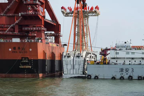 2017年5月2日,港珠澳大桥沉管隧道吊装进入海底