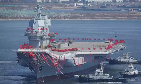 4月26日,中国首艘国产航母在大连造船厂正式下水。第一艘国产航母完全自主设计、自主配套、自主建造,标志着中国国防实力迈向新阶段,象征国家的军事建设迈向一个新的里程碑。