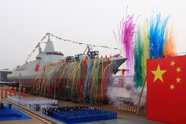 有航母自然要有护航舰队。6月28日,海军新型驱逐舰首舰下水仪式在上海举行。这艘我国完全自主研制的新型万吨级驱逐舰,达到了世界同类舰艇先进水平,是海军实现战略转型发展的标志性战舰。