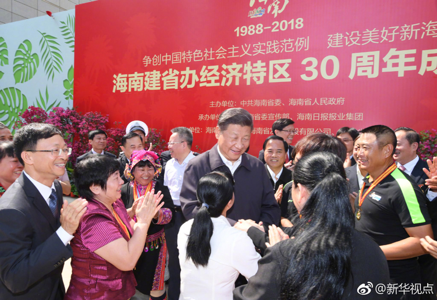 13日上午,习近平总书记在海口市参观了海南建省办经济特区30周年成就展,对30年来特别是党的十八大以来海南经济社会发展成就给予肯定。他指出,贯彻党中央精神不是喊口号,要结合当地实际、经过深入调研形成符合党中央精神的一系列具体举措,并在实施中早见成效、大见成效。
