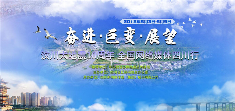 为深入学习宣传贯彻党的十九大精神,全面落实习近平总书记来川视察重要讲话特别是对灾区发展的重要指示精神,5月3日,以“奋进·巨变·展望”为主题的汶川大地震10周年全国网络媒体四川行活动在成都启动。本次活动由中央网信办网络新闻信息传播局指导,四川省网信办主办,四川新闻网传媒集团承办。