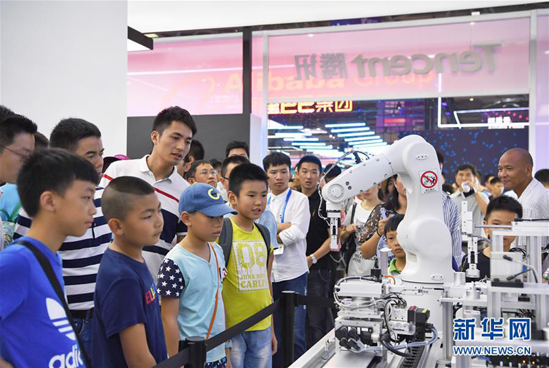 8月23日,观众在首届中国国际智能产业博览会上参观工业互联网平台展品。