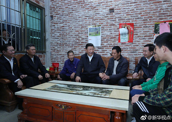 23日下午,习近平一行沿着崎岖的山路乘车来到广东省英德市连江口镇连樟村,走进村公共服务站、扶贫玩具加工厂车间和贫困户家中,同村民们亲切交谈。他强调,全面建成小康社会一个都不能少,在脱贫攻坚战中,基层党组织要发挥战斗堡垒作用,一任接着一任抓,一仗接着一仗打,一代接着一代干,积小胜为大胜,最后取得全面胜利。要认真抓好乡村振兴战略,在脱贫致富基础上加快推动乡村全面振兴,实现农业农村现代化。我们相信,我国广大农民生活一定能越来越幸福。(记者:张晓松、鞠鹏)