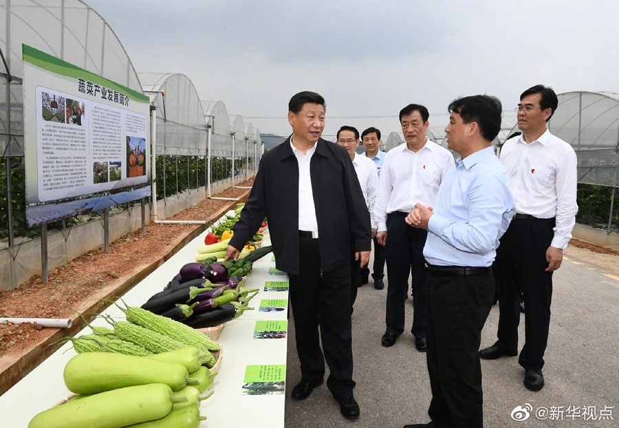 20日下午,习近平总书记来到江西省于都县梓山富硒蔬菜产业园考察调研。产业园以“龙头企业+合作社+农户和贫困户”发展模式,带动了当地村民脱贫致富。看到总书记来了,正在大棚里劳作的乡亲们激动地说:“感谢党的好政策,让我们过上了幸福生活!”习近平对乡亲们说:“共产党就是为人民群众谋幸福的,党中央想的就是千方百计让老百姓过上好日子。芝麻开花节节高,今后日子会更好!”(文字:张晓松 摄影:谢环驰、鞠鹏)