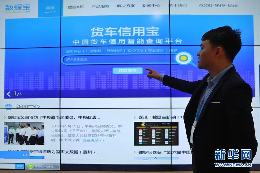 贵州数据宝网络科技有限公司工作人员在展示他们制作的货车信用查询平台(5月20日摄)。 作为全国首个国家级大数据综合试验区,贵州加快推动大数据与实体经济、社会治理、民生服务、乡村振兴的深度融合,给当地民众生产、生活方式带来显著改变。数据显示,贵州大数据企业已达9500多家,集聚了一大批世界知名企业。中国信息通信研究院公布的《中国数字经济发展和就业白皮书(2019年)》指出,贵州数字经济增速超过20%,数字经济吸纳劳动力增速达18.1%,两项指标均名列全国第一。大数据正助力贵州乘“云”而上。 新华社记者 欧东衢 摄