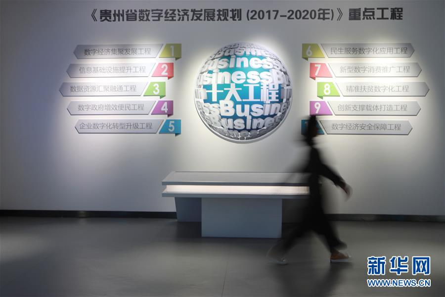 参观者在贵州省贵安新区花溪大学城贵州数字经济展示中心内参观(5月20日摄)。 作为全国首个国家级大数据综合试验区,贵州加快推动大数据与实体经济、社会治理、民生服务、乡村振兴的深度融合,给当地民众生产、生活方式带来显著改变。数据显示,贵州大数据企业已达9500多家,集聚了一大批世界知名企业。中国信息通信研究院公布的《中国数字经济发展和就业白皮书(2019年)》指出,贵州数字经济增速超过20%,数字经济吸纳劳动力增速达18.1%,两项指标均名列全国第一。大数据正助力贵州乘“云”而上。 新华社记者 欧东衢 摄
