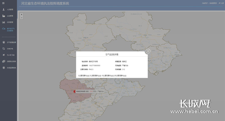 生态环境执法调度系统重污染天气管理模块。河北省生态环境厅/供图