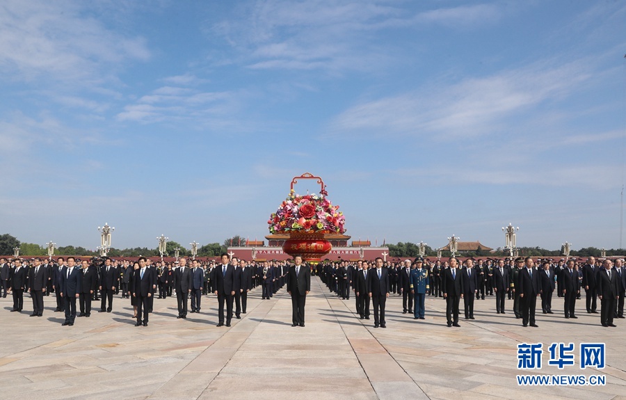 9月30日上午,党和国家领导人习近平、李克强、栗战书、汪洋、王沪宁、赵乐际、韩正、王岐山等来到北京天安门广场,出席烈士纪念日向人民英雄敬献花篮仪式。 新华社记者 谢环驰 摄