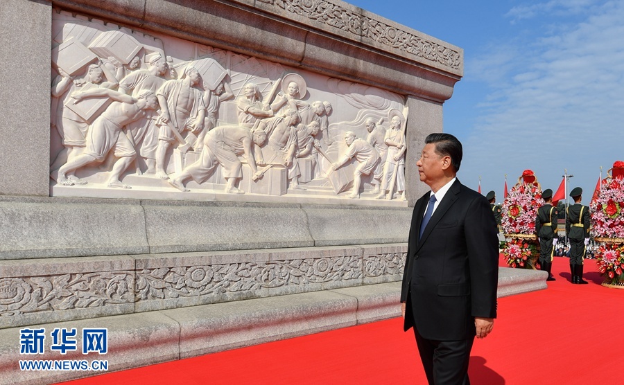 9月30日上午,党和国家领导人习近平、李克强、栗战书、汪洋、王沪宁、赵乐际、韩正、王岐山等来到北京天安门广场,出席烈士纪念日向人民英雄敬献花篮仪式。这是习近平瞻仰人民英雄纪念碑。 新华社记者 岳月伟 摄