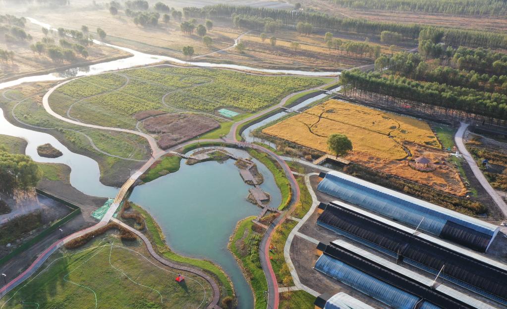 2020年10月,运河路沿线南孙庄镇一处生态农业园区(无人机照片)。(受访单位供图)