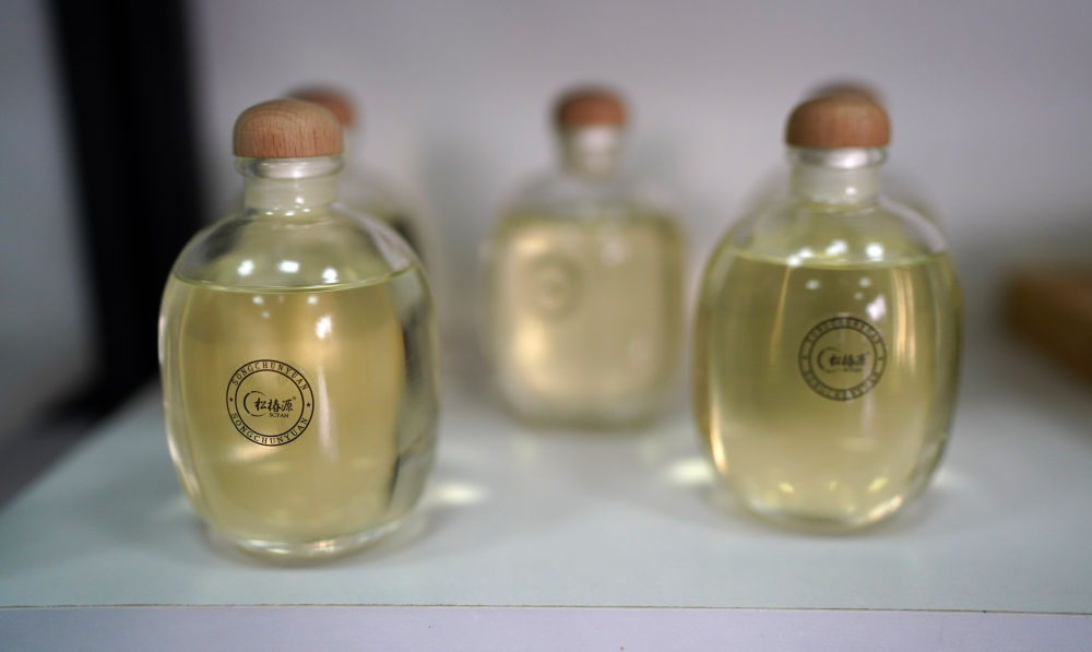 这是2月24日在位于江西赣州市章贡区的赣州哈克生物科技有限公司拍摄的茶油护肤产品。新华社记者 周密 摄