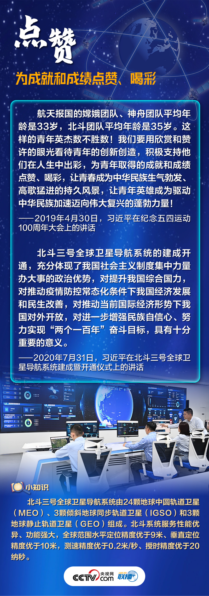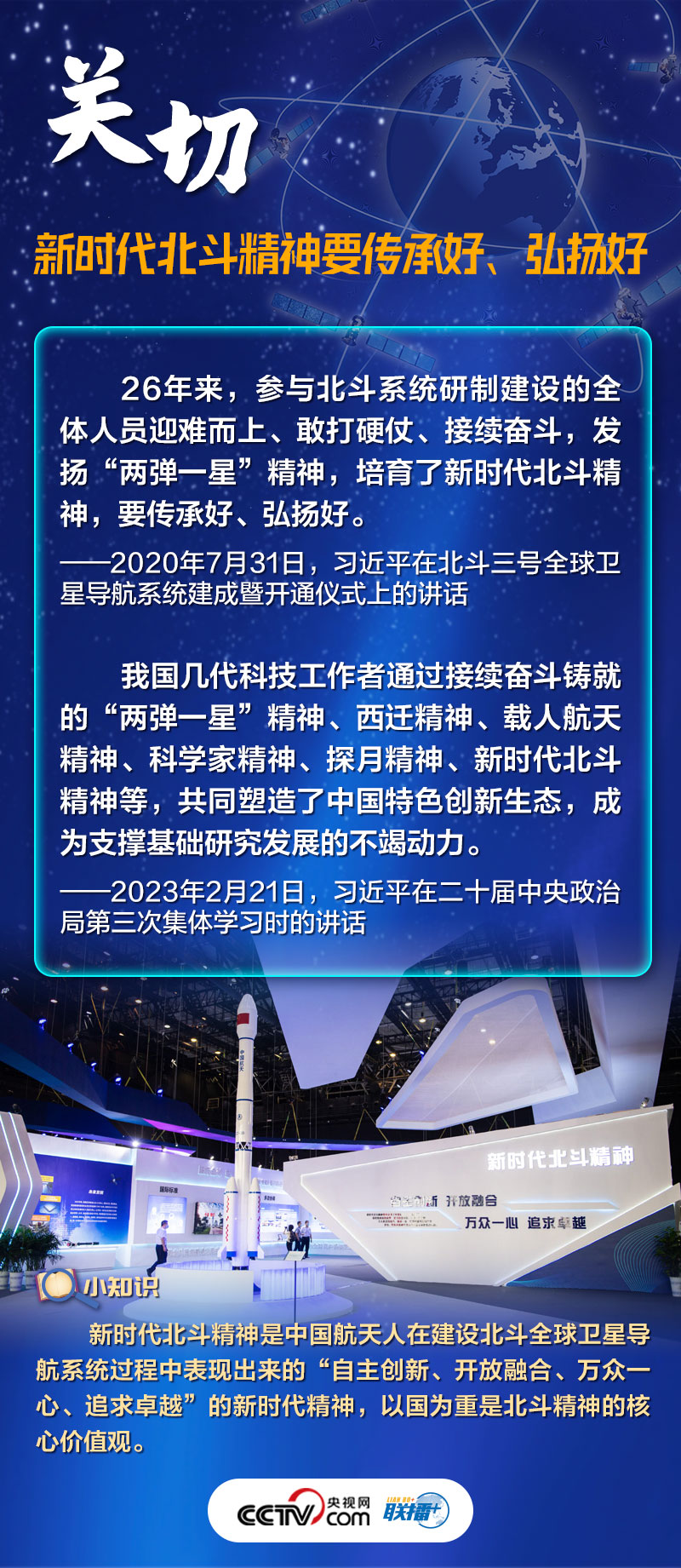 央视网《联播+》特制作创意海报,与您一起重温总书记的殷切鼓励,从新时代北斗精神中领悟实现高水平科技自立自强的力量。
