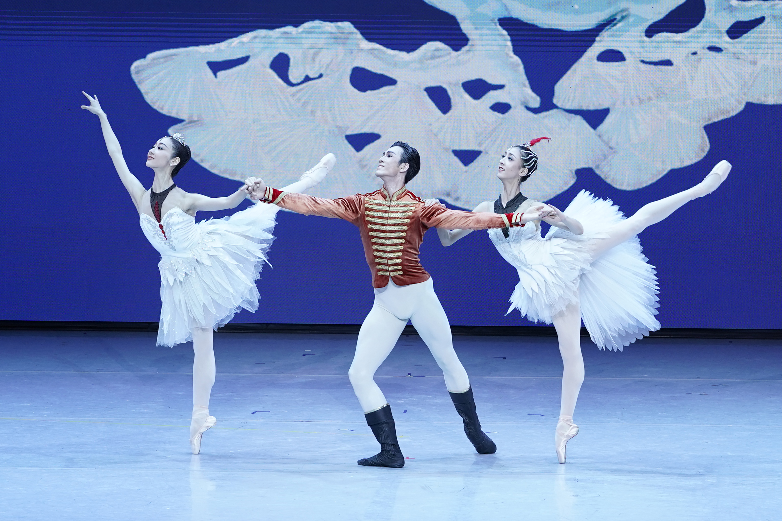 2024年1月27日晚,在阿联酋首都阿布扎比酋长国皇宫剧院,中国中央芭蕾舞团演员在演出中国贺岁芭蕾舞剧《过年》。