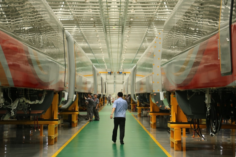 中车长客动车组装配产线。人民网 任佳晖 摄