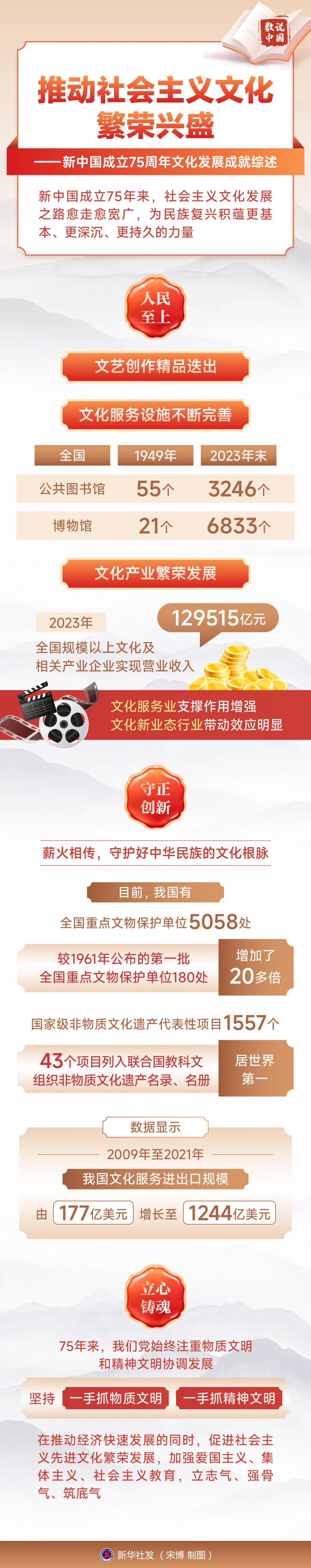 数说中国·75载辉煌成就丨推动社会主义文化繁荣兴盛——新中国成立75周年文化发展成就综述