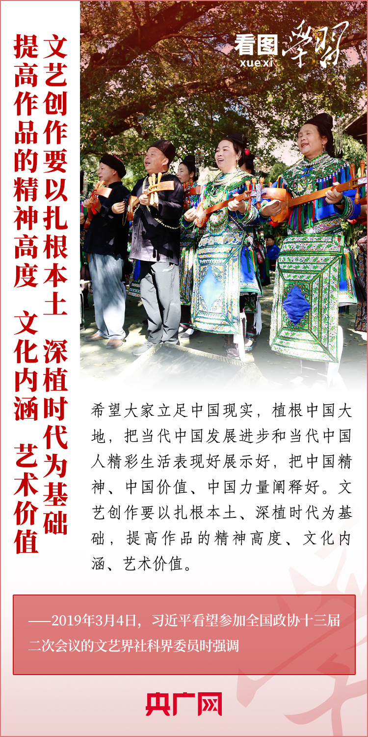 十年来,我国广大文艺工作者深入生活、扎根人民,创作出一大批彰显中国精神、体现人文关怀、富有艺术创新力的优质文艺作品,努力用丰富多彩的文艺精品满足人们对精神文化生活的需求。如何创作出更多无愧于时代、无愧于人民的优秀作品?让我们一起深刻领悟总书记的“文艺观”。