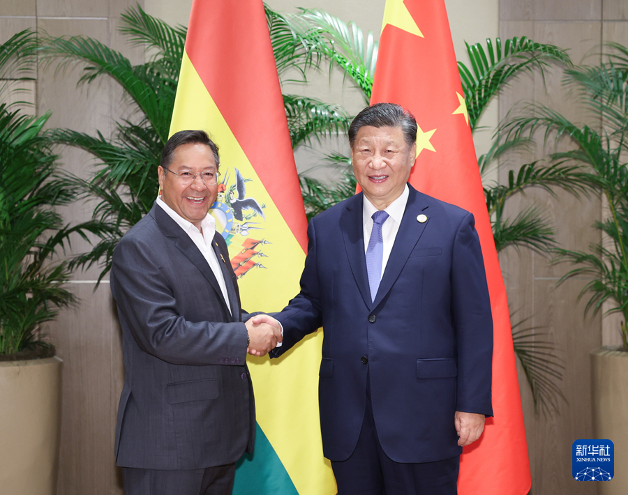 当地时间11月19日上午,国家主席习近平在里约热内卢出席二十国集团领导人峰会期间会见玻利维亚总统阿尔塞。新华社记者 张领 摄
