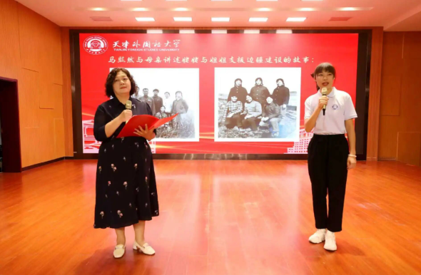 马熙然与母亲讲述姥姥与姐姐的故事(央广网发 天津外国语大学供图)