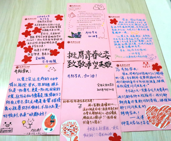同学们以信件的方式为齐际加油鼓劲(央广网发 天津师范大学供图)