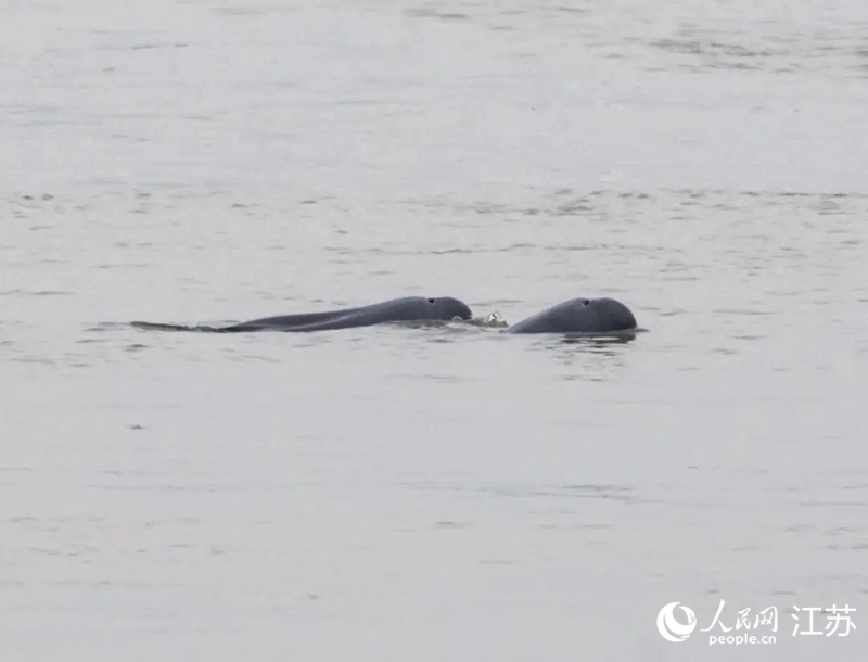 在南京长江新济洲国家湿地公园拍到的江豚。人民网记者 王丹丹摄